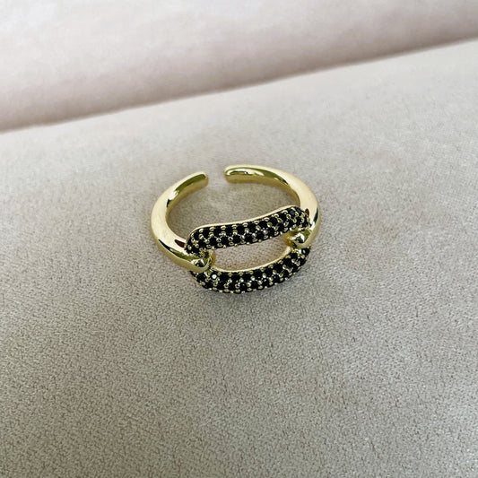 Agotado"CHANTAL BLACK" anillo dorado