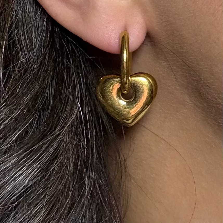 Aretes dorados de acero inoxidable, dije de corazon